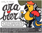 ArabierDrink arabier koel, zegt de Arabische tekst. Ingewijden beweren dat de Arabieren dit zachter zouden uitdrukken, in de zin van: men drinke het arabier koel. Hoe het ook zij, bier is daarginds verboden, hoe dorstlessend het ook moge zijn. arabier (altijd met kleine a, meervoud arabiers in de zin van twee glazen arabier, arabieren in de zin van er zijn geen twee arabieren) is een zuiver moutbier van 8° alc/vol. Met nagisting en gehopt met bloemenhop (Nugget) uit Poperinge. Speciaal is de dry-hopping (droge hopping) bekend in Engeland waar de hopbellen een tijd meelageren met het bier. Kenners zullen dit zeker naar waarde schatten.