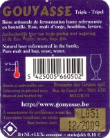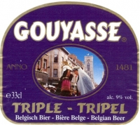 Gouyasse TripelDe Gouyasse Triple (9% Alc. Vol.) word uitsluitend gebrouwen met 4 bestanddelen van eerste kwaliteit: water, mout, hop en gist. Blond, zijn zachte smaak en zijn subtiele aroma's zullen uw smaakpappilen in vervoering brengen.
