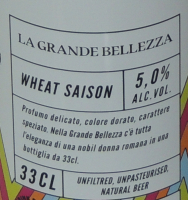 Our tribute to the Italian Dolce Vita. This wheat ale is fermented with a Belgian Saison yeast and a subtle dry-hopping. She's unfiltered and bottle refermented. Soft and profound, delicate and complex, rounded and fruity, hiding a slightly spicy character: nella Grande Bellezza c’è tutta l’eleganza di una nobil donna romana in una bottiglia da 33cc