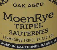 Moenrye Tripel Sauternes Barrel AgedMoenRye Tripel is een blond medium hoppig degustatie bier van 9° alc, behorend tot de Belgische Tripel stijl. Kenmerkend voor deze tripel is dat hij gebrouwen wordt met een flinke hoeveelheid rogge.