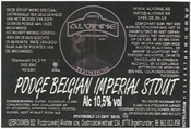 Podge Belgian Imperial StoutDeze imperial stout werd ontwikkeld ter gelegenheid van het bezoek van Engels biergoeroe Chris Pollard aka Podge. Het is een diepzwart bier met romige schuimkraag. Er is een complex aroma van gebrande mouten en alcohol. De aanhef is lichtzoet met toetsen van koffie, zwarte chocolade en alcohol. De afdronk is bitterdroog en houdt lang aan.
