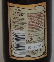 Tripel LefortTripel LeFort is een goudblond bier van 8,8% dat zich onderscheidt door zijn frisheid, fruitig aroma en een mooie zachte en volle smaak. De hoge gist die voor dit bier gebruikt wordt resulteert in een bier met een vanille- kruidnagelaroma en tegelijk een fruitige smaak van bananen en rode appels. Aangename toetsen van citrus, limoen en rozen maken het bier evenwichtig en tegelijk complex.