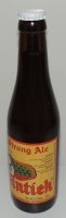 Blond/amber ‘Old Strong Ale’, van hoge gisting, met nagisting in de fles, ongefilterd, niet gepasteuriseerd.