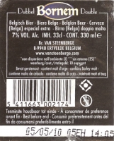 Bornem Dubbel is een 'levend' abdijbier van 8 % volume alcohol. Dat wil zeggen dat het bier, na de eerste gisting op vat, ook na zijn afvulling mooi verder blijft evolueren tijdens de tweede gisting op de fles of in het vat.
