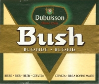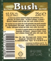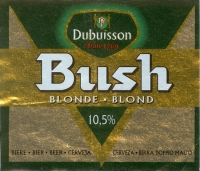 In 1998, ter gelegenheid van de 65e verjaardag van Bush Ambrée dat door zijn grootvader werd gecreëerd, wilde Hugues Dubuisson een nieuwe Bush ontwikkelen voor de liefhebbers van blond bier… en zo ontstond Bush Blonde. Dit gefilterd bier van hoge gisting treedt in de voetsporen van zijn grote broers, Bush Ambrée en Bush de Noël. En hoewel deze blonde variant wordt gemaakt met dezelfde knowhow en dezelfde huisgisten heeft die toch een heel eigen karakter. Door te werken met traditionele mouten en alleen de bekende hop van Saaz te gebruiken, krijgt dit bier een schitterende kleur en een palet van subtiele smaken en typische aroma's die harmonieus in mekaar overvloeien en perfect in evenwicht zijn. De langere gisting maakt dat dit bier een alcoholpercentage van 10,5% heeft en opmerkelijk licht verteerbaar is.