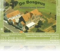 Heuvellands blond. Hergist in de fles. Gebrouwen als huisbier voor vakantiehuis "De Bosgeus" in Nieuwkerke. Met toevoeging van appelsap uit hun boomgaard.