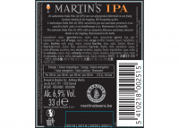 Uit passie voor het bier, zijn traditie en kwaliteit is de Martin’s® IPA (Indian Pale Ale) geboren. Het unieke aan dit bier is zijn hopboeket, én zijn levendige pareling. Op het einde van de gisting werden hopbloemen toegevoegd die het bier een uitgelezen parfum geven. Na botteling onderging het bier een hergisting op de fles. Bewonder dit levende bier, bruisend van traditie ! Het bevat de kennis, de kunde en de wijsheid van 5 generaties Martin’s.
