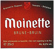 De « Moinette brune » is een hoge gistingsbier met hergisting in de fles. Sinds de creatie in 1986 kent dit bier meer en meer succes. Een mengeling van 4 speciale mouten geeft het zijn ietwat ongebruikelijke kleur, licht donkerbruin tot zelfs rossig met vuurrode tinten. Het zijn vooral de aroma’s van hop en mout die de dominerende smaak bepalen. Een zachte bitterheid combineert de Moinette brune met een licht fruitige smaak. De reële hergisting in de fles, die zich nog maanden verder zet in uw kelder, transformeert zich tot dit verrassend bier.