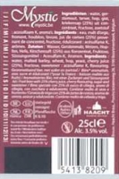 Mystic met krieken is een heerlijk fruitbier dat de krachtige smaak van de kriekvrucht (25% kriekensap) versmelt met de verfrissende eigenschappen van een witbier. Alle zintuigen worden verwend door dit verrassende fruitbier, dat u laat genieten van een aangenaam aroma en ook het oog aan bod laat komen. De talloze tinten van haar natuurlijke rode kleur vloeien immers harmonieus in elkaar en geven aan dit fruitbier een stijlvolle elegantie. Maar deze 'mystieke verleider' laat u vooral volop genieten van een rijkelijk pallet aan smaken. Een fruitzure aanzet vloeit zachtjes over in een licht zoete, doch niet kleverige afdronk. Volg uw intuïtie en laat u verleiden ...