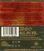 Rodenbach Grand Cru (Alc. 6% Vol.) bestaat uit 1/3 jong en 2/3 gedurende 2 jaar op eik gerijpt bier. De grotere hoeveelheid aan oud op eik gerijpt bier draagt bij tot de complexe, intense fruitigheid met een zeer lange afdronk net als een Grand Cru wijn.