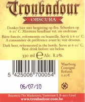 Troubadour Obscura is een mild donkerrood-bruin bier met een mooi uitgebalanceerd Belgisch tintje. Al na de eerste aanzet van dit bier merk je het verschil met andere bruine bieren. De stevige moutsmaak is afkomstig van de combinatie van 4 mouten waarmee dit bier wordt gebrouwen. Ontdek de verschillende toetsen: chocolade, koffie, vanilleā¦