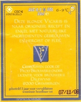 Smaakbeschrijving: Vicaris Tripel (8.5°) is een bier van hoge gisting met hergisting zowel op fles als op vat, met smaakevolutie. Dit bier heeft een mooi, stabiel en wandklevend schuim. Het overvol mondgevoel is gecreëerd door zijn rijke hop- en moutsmaak. Vicaris Tripel is een fruitig bier.