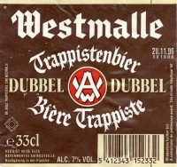 Dubbel van Westmalle is een donker, roodbruin trappistenbier met nagisting in de fles. De crèmekleurige schuimkraag geurt naar speciale mout en laat een mooi kantwerk achter in het glas. De smaak is rijk en complex, kruidig en fruitig, met een frisbittere finale. Het is een evenwichtig kwaliteitsbier met een zacht mondgevoel en een lange, droge afdronk. De Dubbel bevat 7% alcohol. Al sinds 1856 brouwen de monniken naast hun maaltijdbier een donkere trappist. Vanaf 1926 passen ze het recept aan en brouwen ze het bier wat zwaarder. Daar ligt de basis voor de huidige Dubbel. De flesjes van 33 cl worden per stuk, in mandjes van zes of in kratten van vierentwintig verdeeld. Maar Westmalle Dubbel is ook het enige donkere trappistenbier dat in zo'n 300 zorgvuldig geselecteerde horecazaken wordt getapt uit vaten van 30 en 50 liter. Doordat dit levende bier daarin wat anders evolueert, bekomt het een andere, wat zoetere smaak dan een Dubbel uit een flesje.
