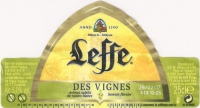 Leffe des Vignes wordt uitgevoerd door AB InBev in Leuven (Leuven) in Belgiƫ (Vlaanderen). Het wordt gebrouwen met gerstemout en 1% witte druivensap (verkregen uit geconcentreerd sap) als 5%.